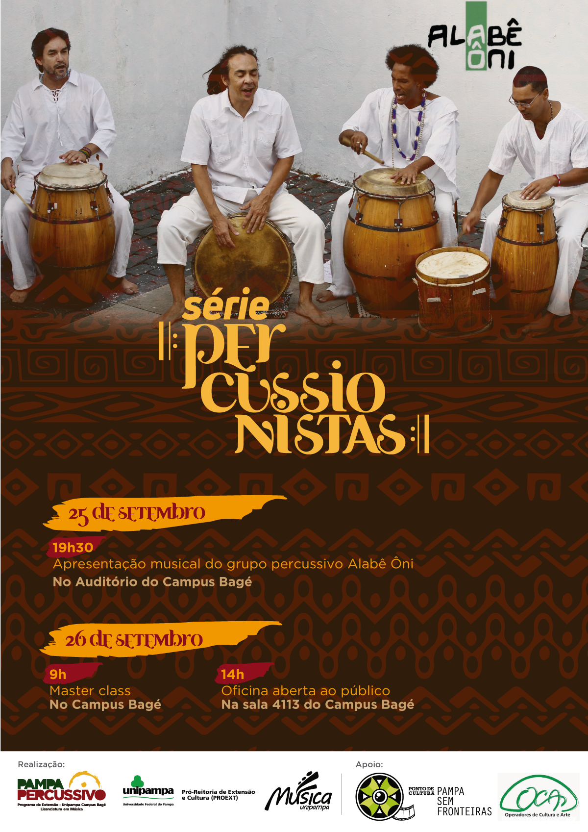 2º Concerto — Percussão Afro-Gaúcha, com o grupo Alabê Ôni (Porto Alegre), realizado em 25/09, seguido de masterclass e oficina aberta à comunidade no dia 26/09.